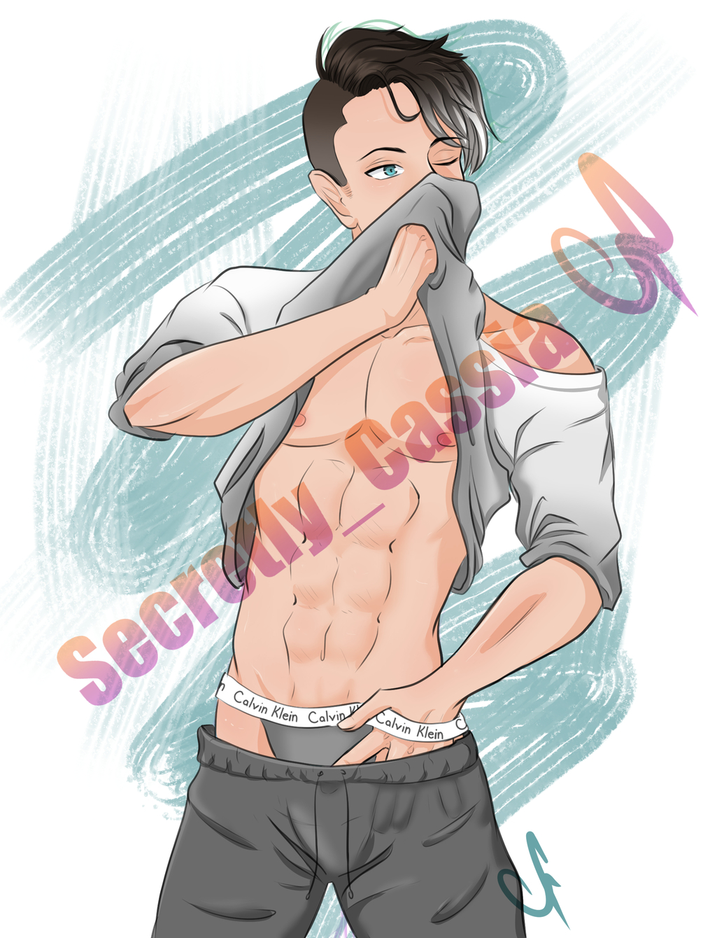 Disclaimer: This is NSFW art, you must be 18 years or older to purchase the 18+ version. Please note, he is almost naked with full exposure in the 18+ version.